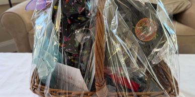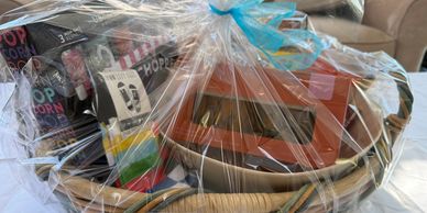 Quilting all day, kids and spouse wondering when they will see you again? If this sounds like you, the movie night basket is a perfect fit. Popcorn and nostalgic candy for the kiddos, along with a $25 Amazon card to rent a movie or two, and a NH Liquor gift card for you to help fill the beautiful glass tumblers included. And who doesn’t love a lottery ticket? And you’re lucky with 2 tickets included. A couple of other surprises await you, too. Total value $155.