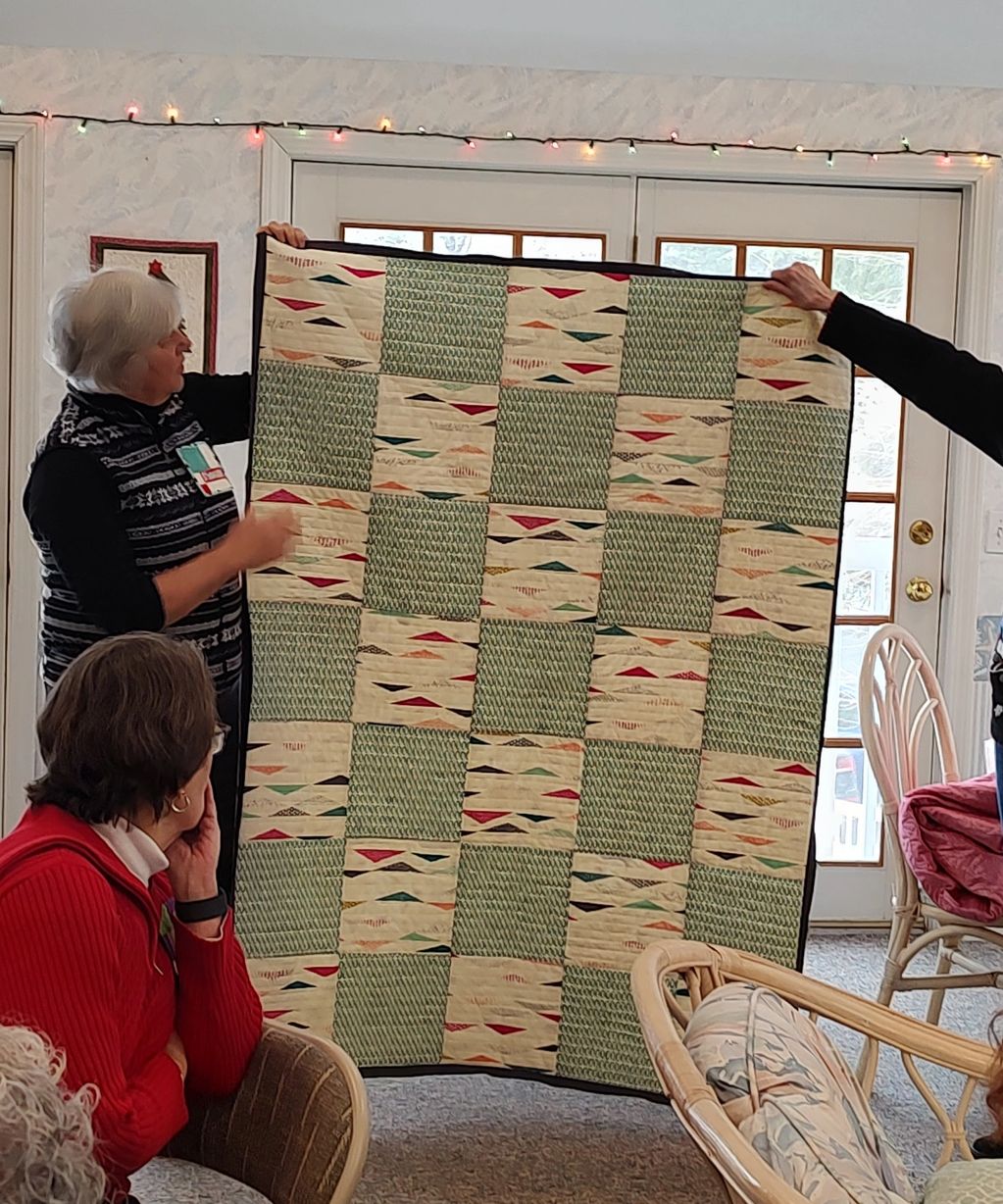 Mary Young made this quilt using fabric and a pattern that was donated to the guild. It was long armed by Karen Kenny and given to The Cross Roads House in Portsmouth. I love the subtle palette!